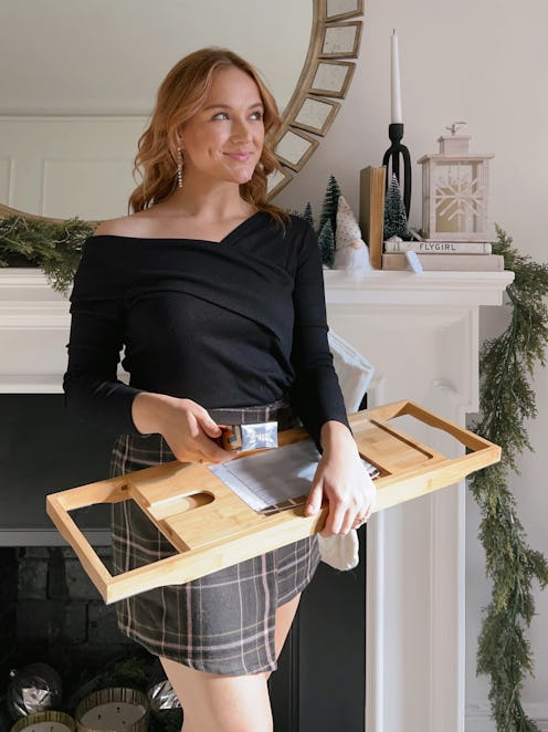 When it comes to her perfect holiday look, Shields Wolfe stays true to her personal style. “A mix of nostalgia along with my current style is what I love filling my home and closet with,” she explains. “I love seeing the resurgence of traditional, vintage styles that give us that classic feel mixed with beautiful minimalist holiday trends!” Her Walmart look, which consists of an off-the-shoulder wrap top, a plaid skirt, and booties, is a more seasonal version of her everyday attire. “Finding something that feels like me, just at my most festive, is what I like to wear during the holiday season,” says Shields Wolfe. “I love neutral colors and items that I can wear all year round, while adding in some festive touches.”