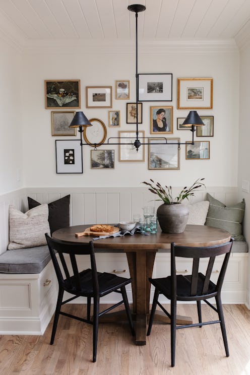 As Mullen succinctly explains, “Gallery walls aren’t just for long hallways or staircases.” Rather, you can create them anywhere: “Over your bedside table or around a small mirror over the sink in your powder room.” Basinger provides another idea in this vein. “If the space has a great corner, we love to wrap frames around two walls.” Essentially: If there’s empty space, there’s an opportunity to create a gallery wall in your home.